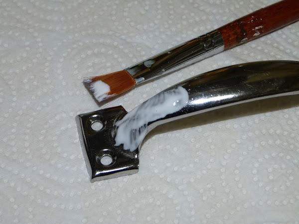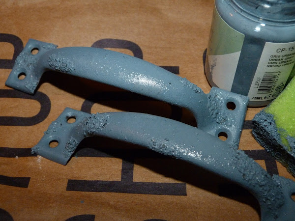 Bien seca la cola, he pintado las asas con chalk paint gris y esponja en primer lugar.
