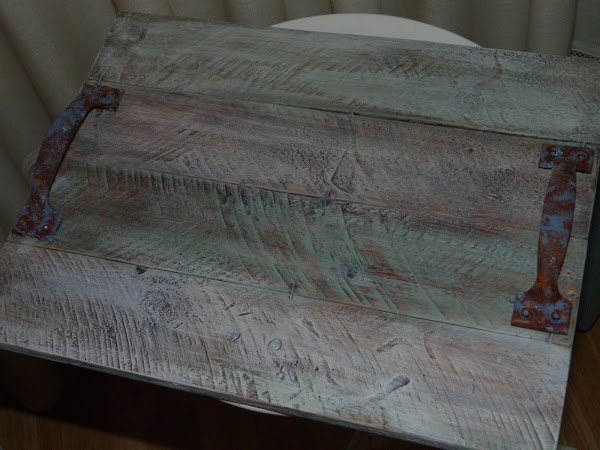 Sólo queda atornillar las asas a la madera, "oxidar" también los tornillos y podremos estrenar nuestra bandeja.
