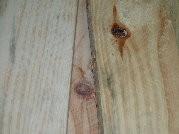 He cortado cuatro de la misma medida y las he lijado con lija de grano grueso hasta quitarles toda la aspereza que suelen tener estas tablas. Aquí podéis ver la diferencia entre las tablas lijadas y las que aún no lo están.