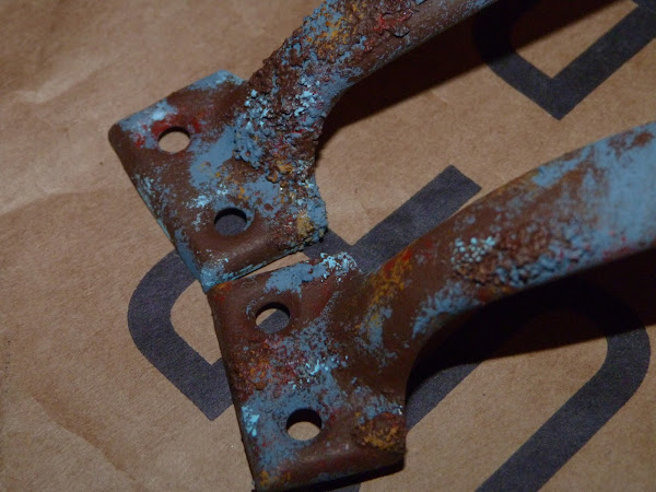 Después, he ido alternando otros tonos (marrón chocolate, rojo óxido, ocre y turquesa) para realizar un efecto oxidado. Podéis ver el proceso más en detalle en otro post pinchando aquí. Este es el resultado: