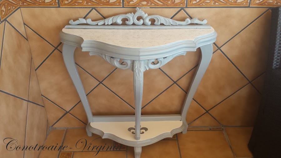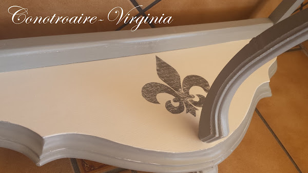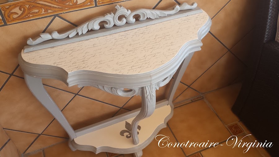 La he pintado con pinturas tiza, desgastado un poco con lija y acabado con cera incolora.
