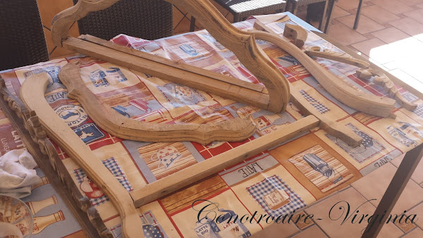Al tenerla de nuevo montada, observe sitios en los que quedaban aberturas o tenian faltas de madera. Lo solucione con una barrita de masilla para madera. Es como la plastilina, lo amasas y lo pones en en lugar que lo necesites y le vas dando la forma. Una vez seco, se lija y pinta como la madera.