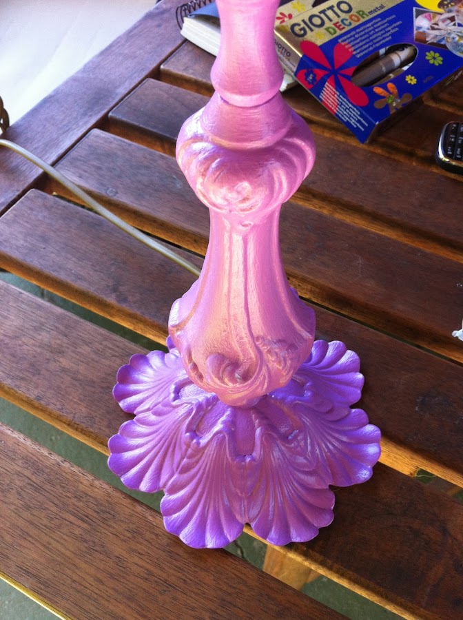 Prueba de ello es esta lámpara de sobremesa con el pie de bronce que una de las madres de TCT hubiese tirado, pero que con nuestras previas advertencias decidió guardar para sus niñas customizadoras.