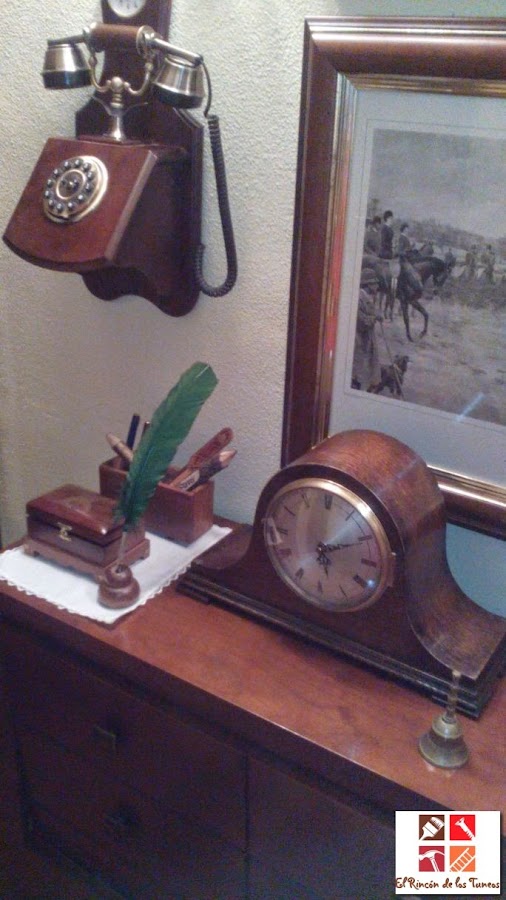 Una mano de lija fina muy suavemente por toda la madera y en la esfera ...sorpresa.....era negra y al ir lijando ha ido saliendo el dorado original que tenía el reloj.
