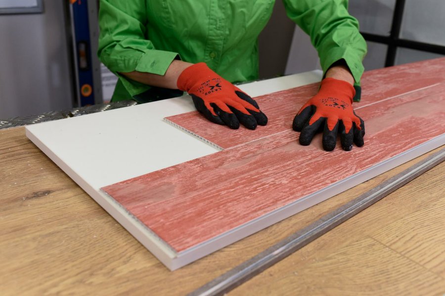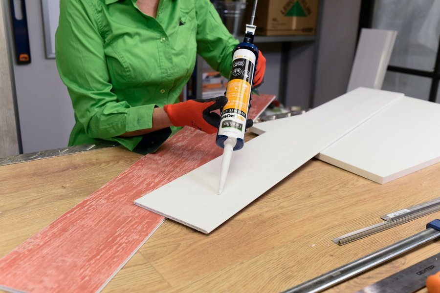 El revestimiento de PVC en lamas machihembradas es un producto muy fácil de manejar, pues es realmente ligero y se trabaja con herramientas muy básicas. Con un simple cutter podremos cortar las lamas, y para su instalación emplearemos un adhesivo de montaje. Además, emplea perfiles plásticos para conseguir bordes perfectos.