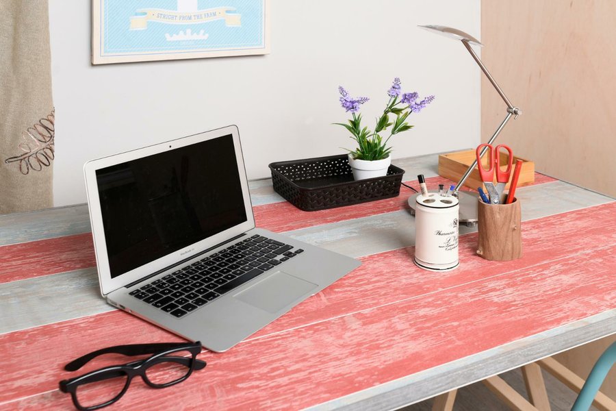 Y, por supuesto, no podríamos cerrar el artículo sin demostrar las posibilidades del revestimiento Cabane para la decoración de muebles, a través de este paso a paso para construir una mesa de escritorio empleando los siguientes materiales: