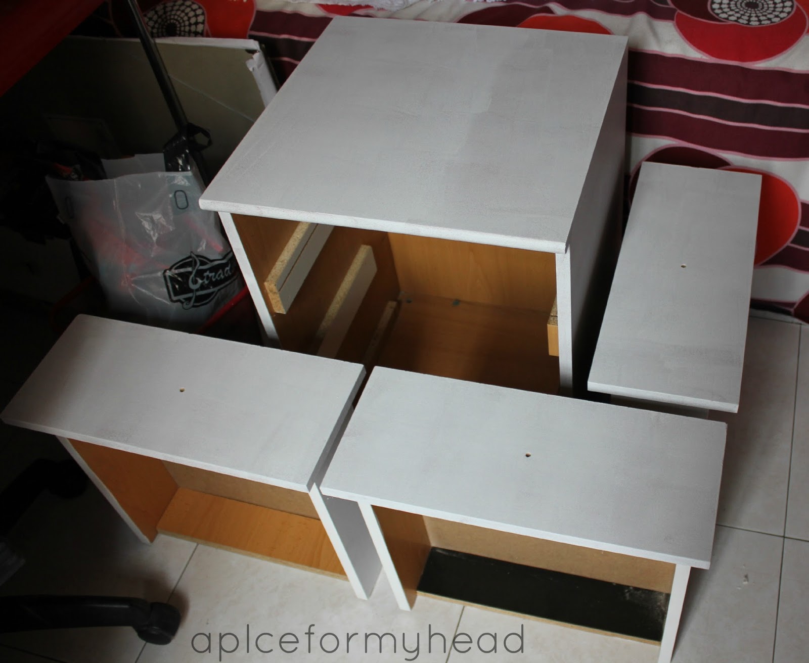 Hace...la tira de tiempo nos encontramos una mesita de noche en la basura. Era cuadrada, de contrachapado, la típica baratilla, pero la cogimos! Tenía alguna pegatina y no tenía tiradores, bueno si, le quedaba uno.