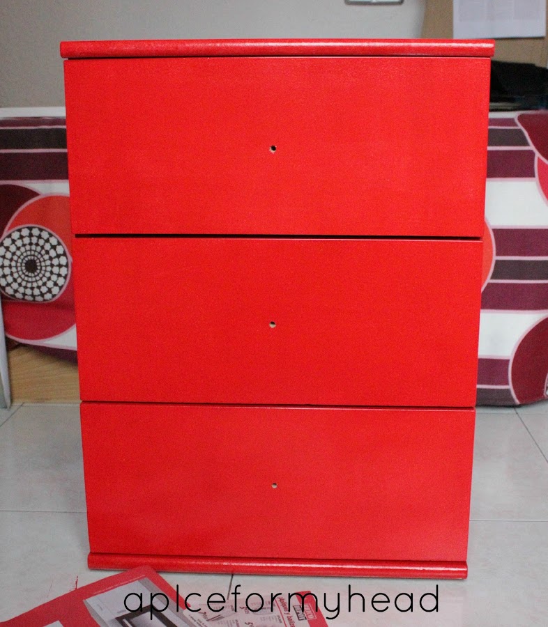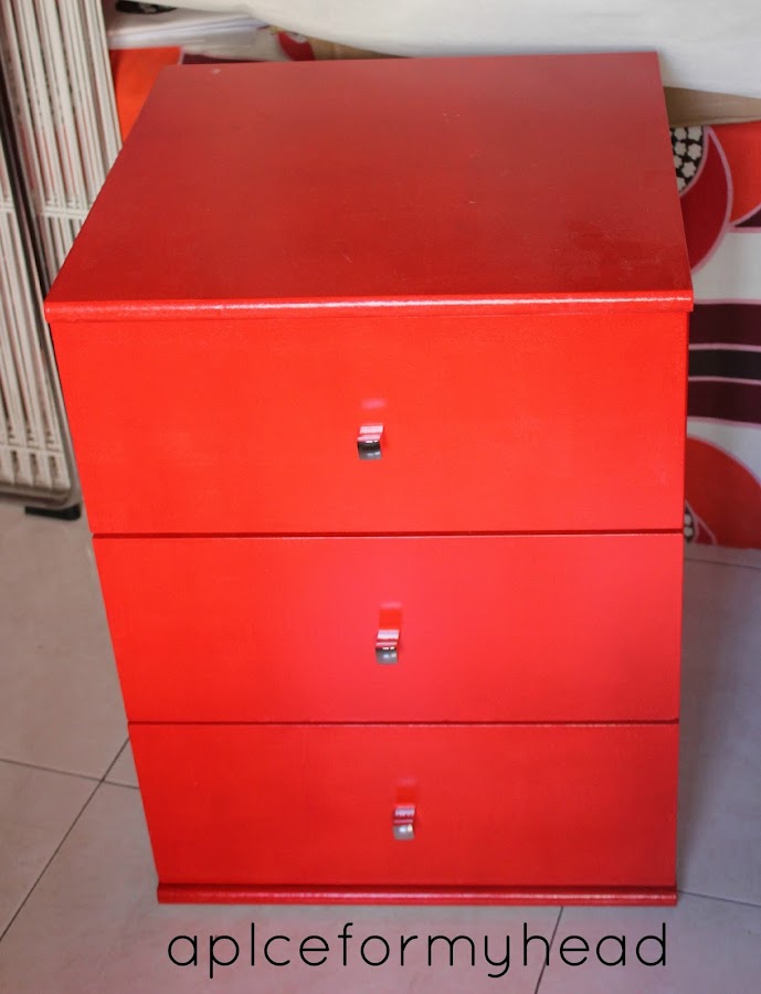 Ya que la iba a colocar en el estudio decidí pintarla de color rojo. Esmalte rojo brillante.