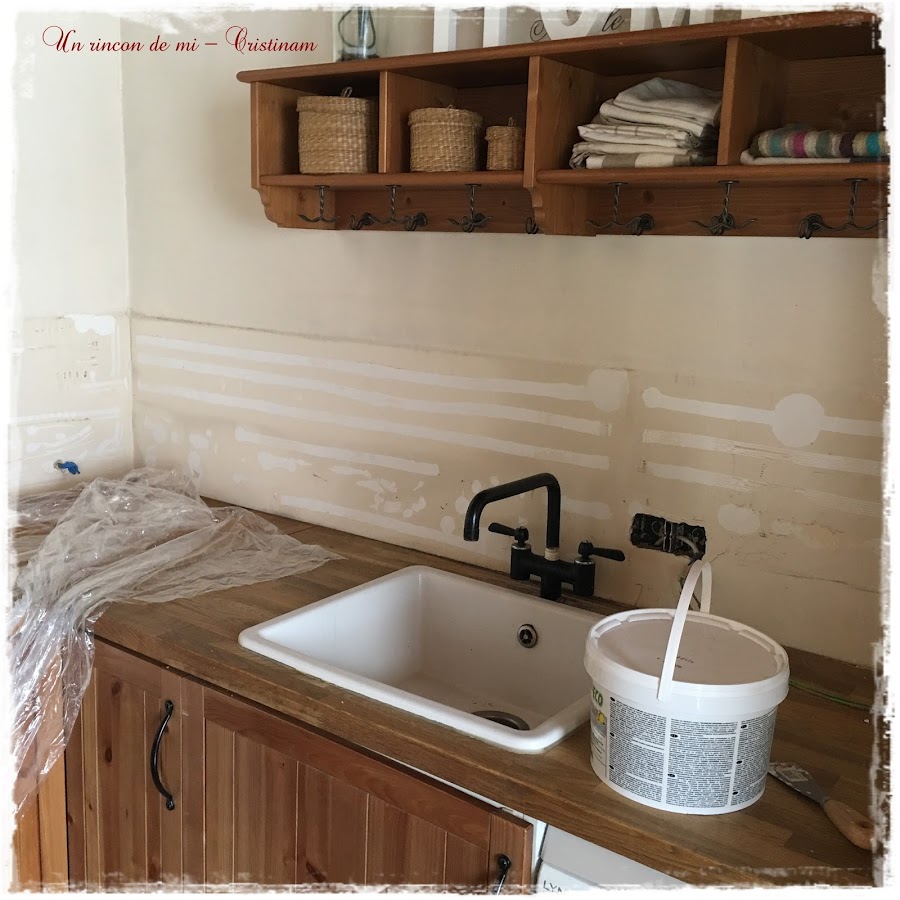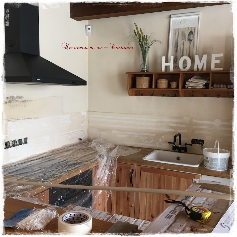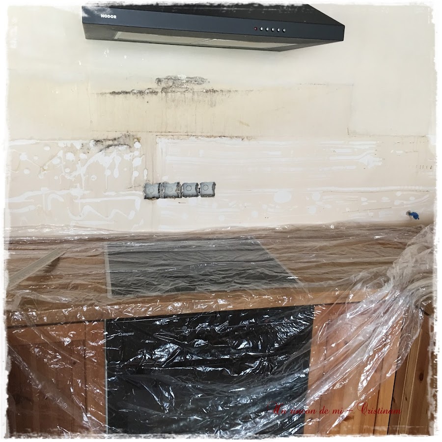 Así que lo primero fue despejar todo de la encimera , retirar los enchufes y proteger con plástico la encimera.