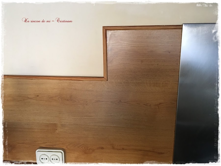 He puesto un listón de madera que separa la encimera de la pared de azulejos.