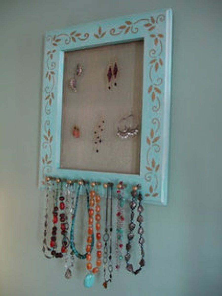 Si vuestro destinatario es una mujer, esta opción será perfecta: organizadores de joyas, para tener toda los complementos a mano y de una manera muy decorativa. Con un marco de fotos, diferentes enganches o escarpias y alguna técnica decorativa (estarcido, decoupage..) podemos 'levantar' estupendos diseños.