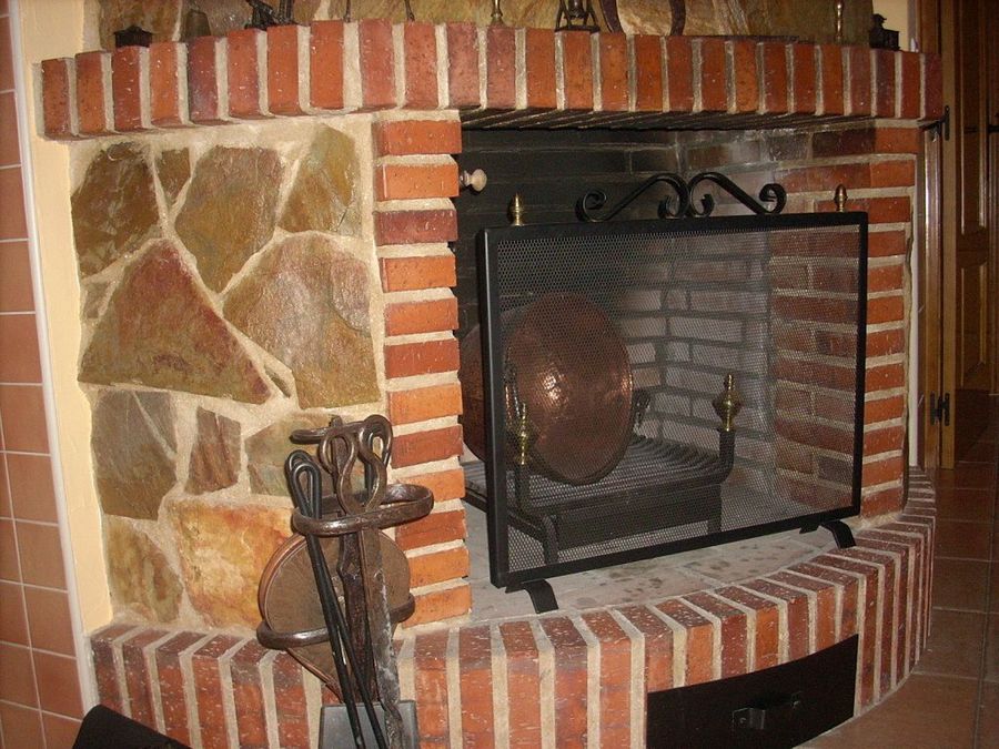 Dos rincones de la bodega. La chimenea es lo primero que hicieron. El padre de nuestra amiga quería que tuvieran en la casa un recuerdo suyo, y participó de lleno en la faena. Después de construirla, adornó la chimenea con antiguos aperos.