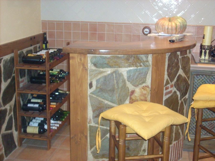 La barra está en un rincón, y ha sido revestida impecablemente con piedra.