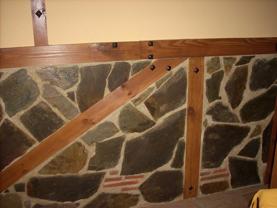 Apreciamos en las imágenes la calidad irreprochable de los acabados, tanto la pintura del techo como el revestimiento de piedra y madera.