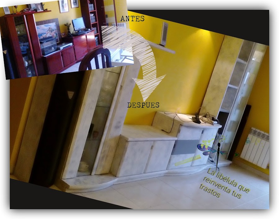 Hoy os dejo el tuneo al que he sometido a mi mueble de comedor que, en su tiempo, tenía un color caoba precioso y ultra-moderno, pero hoy ya no tiene sentido. Como físicamente está perfecto, solo es un buen lavado de cara (que me ha durado casi 1 semana...)