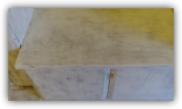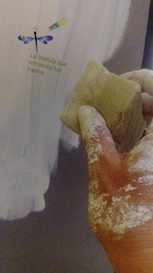Seguimos con la segunda fase, que no es otra que darle un aire mas claro, y claramente desgastado. Para ello utilizo la pintura blanco antiguo, y la aplico con una esponja, arrastrándola; conocéis la técnica del pincel seco? pues es lo mismo, pero con una trozo de esponja.