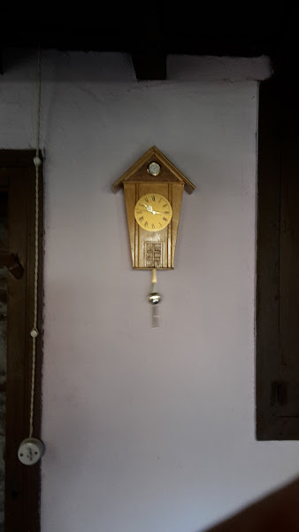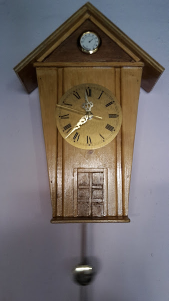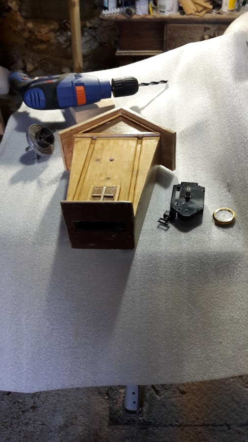 El mecanismo simplemente va puesto por detrás y luego lleva una tuerca que lo sujeta por delante, este mecanismo lleva también un enganche para colocarle un péndulo y el termómetro va encastrado en el agujero.