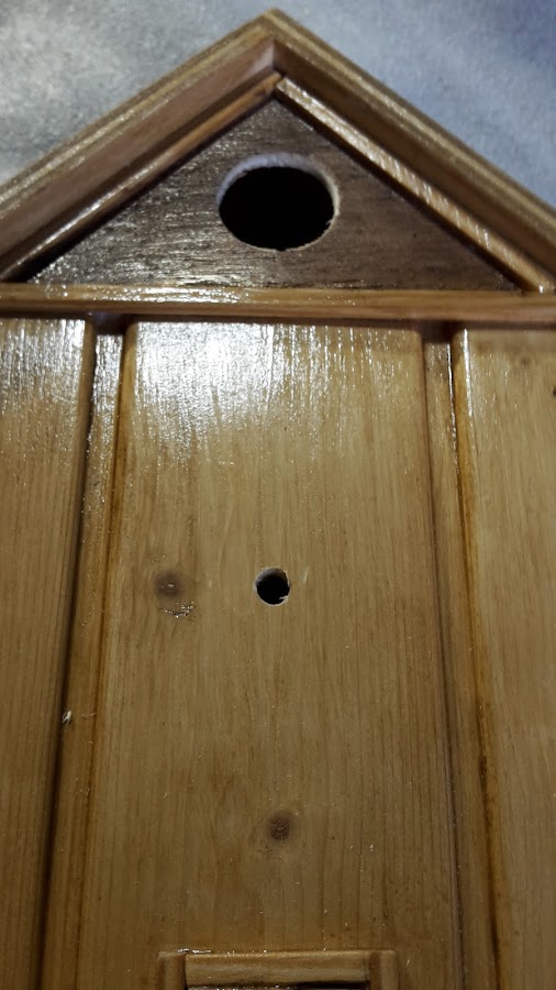 Hacemos los agujeros donde irá el reloj y uno arriba mas grande para poner un termómetro