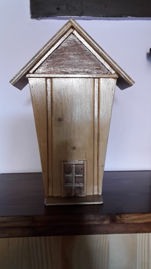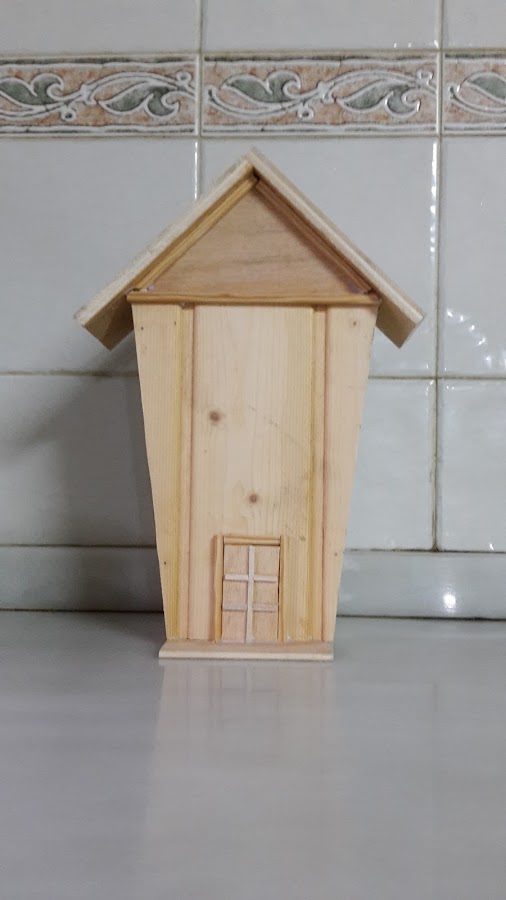 También cortamos una tabla en forma de triangulo para la parte de arriba de la caja