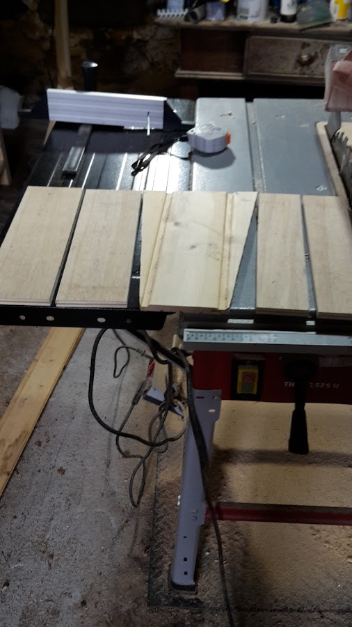 En primer lugar cortaremos las tablas con las que vamos a hacer la caja del reloj, son tablas que habían sobrado de otros bricos, aquí se puede ver el frente y los laterales, ademas del tejado