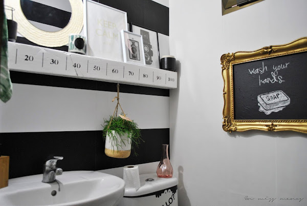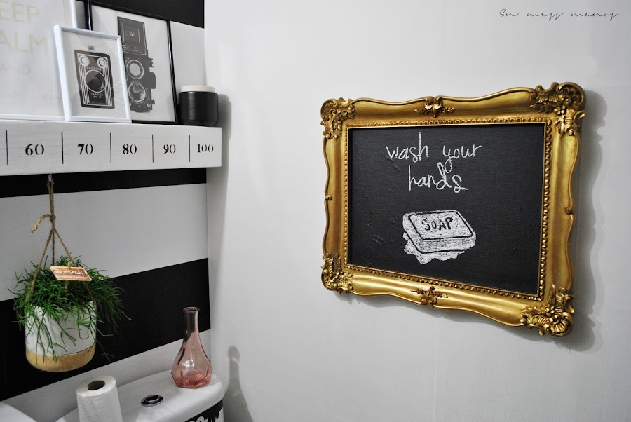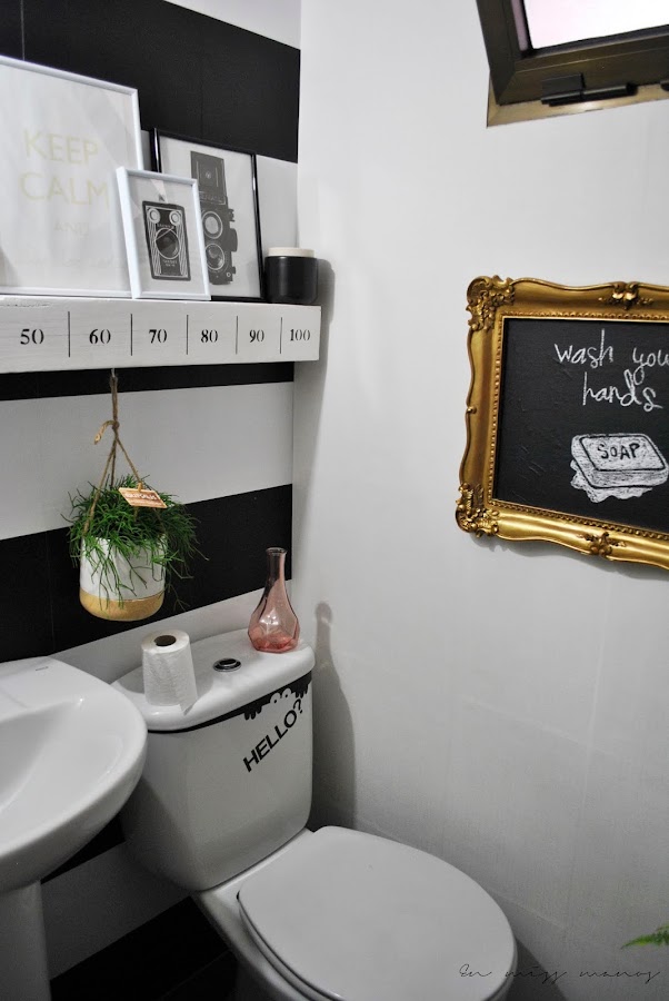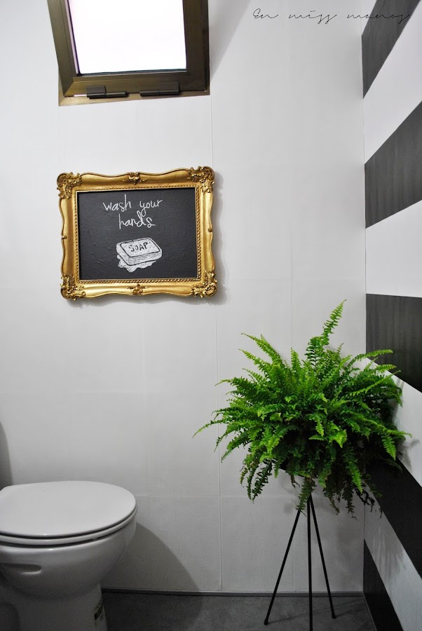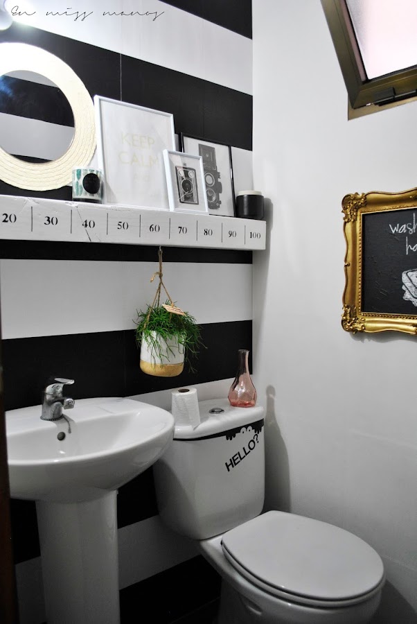 Siempre me había gustado la idea del baño a rayas blanco y negro con algún toque dorado, y estos marcos la verdad es que me encantan.