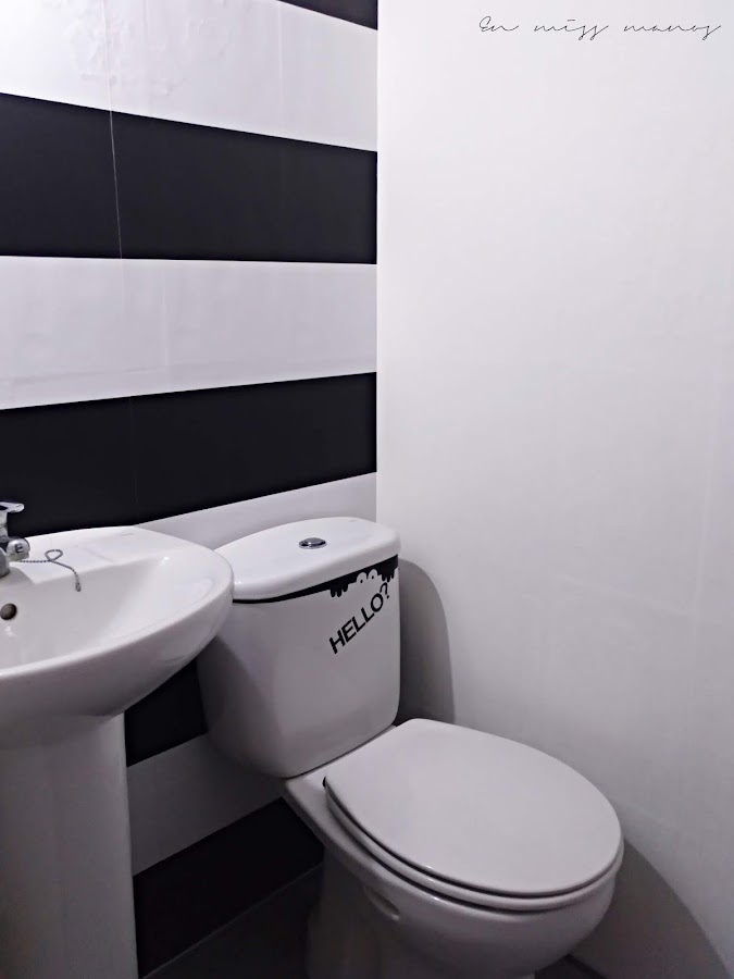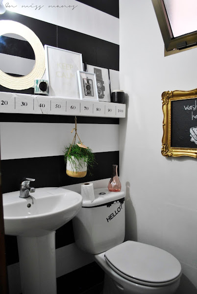 Llevaba con la idea de empapelar este aseo a rayas desde hace años...sí, sí...¡años!, pero el tiempo vuela como ya sabéis, y hasta que una se puede poner a ello sin tener a medias otras tantas mil cosas, pues no se da ni cuenta.