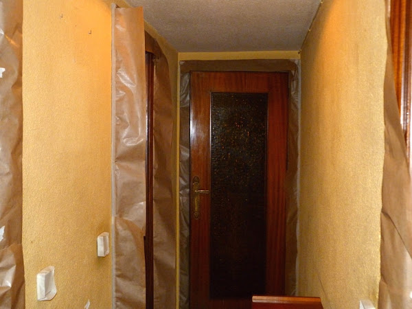 En la parte inferior de las paredes del pasillo, tras sanear los desconchones producidos por la humedad raspando la pintura, voy a colocar un friso que os enseñaré también cuando esté terminado.