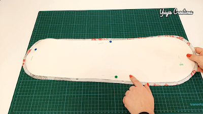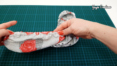 En los lados curvos tenemos que hacer unos pequeños pliegues. No te preocupes si no te quedan perfectos, esto no se va a notar cuando pongamos la cinta elástica.