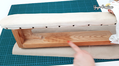 Empezamos por quitar el forro, y lijar toda la madera. Yo usaré una lija de grano 280 que es muy finita y no dejará grandes marcas en la madera. Después de lijar vamos a sacudir el polvillo con un trapo y limpiaremos la base textil de la mesita.