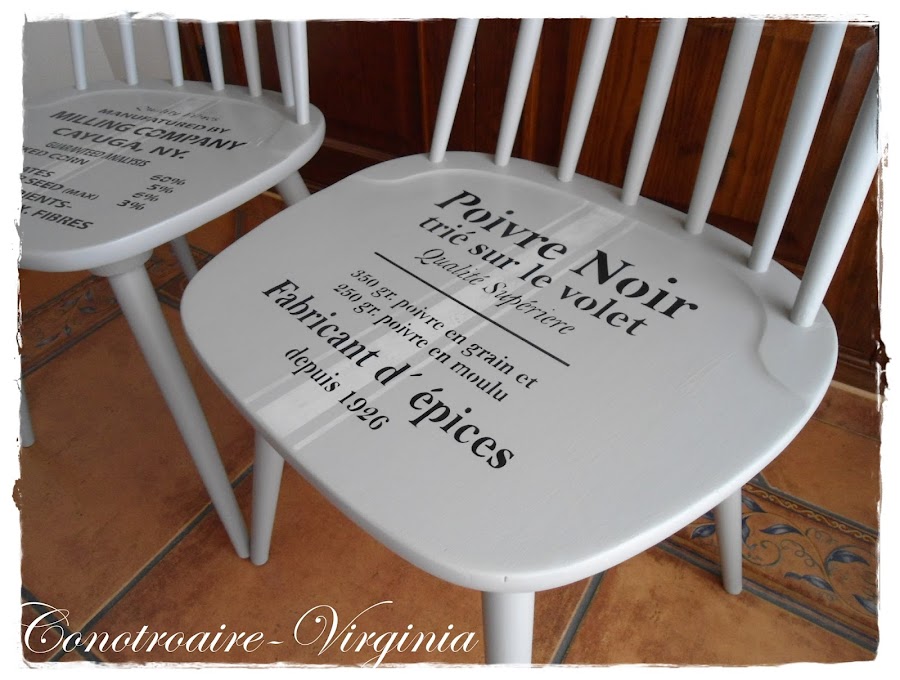 He utilizado pintura tiza en color gris perla para toda la silla. Mi idea era darles un estilo industrial.