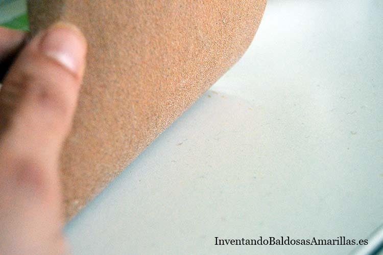 Antes de sacar el rodillo vamos a preparar bien la superficie del mueble de melamina. Como sabéis, la melamina es un conglomerado de madera, que no se caracteriza por tener un buen agarre. Aunque es madera está hecha con trozos y por tanto no tiene esa capacidad de absorción de la madera maciza. Para asegurarnos de que la pintura puede agarrar sin problemas debemos pasar una lija fina, de grano 100 0 200, y retirar todo el polvo con un paño. Para rematar damos acetona, que nos va a ayudar a desengrasar y quitar toda la posible suciedad.