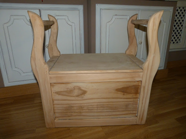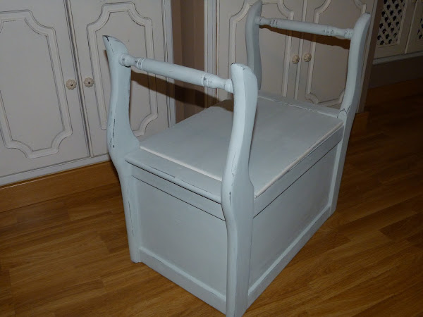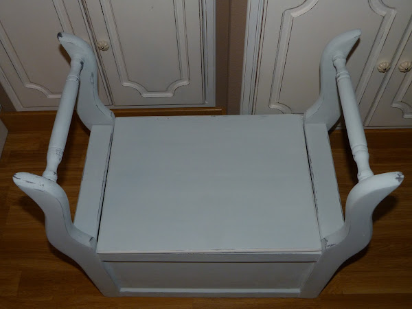 Sin embargo, un día me cansé de verlo oscuro y quise pintarlo en color blanco roto, pero cuando estaba a medio hacer, me di cuenta de que no me convencía... Además, por aquel entonces había comprado un baúl precioso para el dormitorio, y los dos recargaban demasiado. Resultado: el pobre banco pasó una buena temporada en el garaje de mis padres, medio pintado y esperando su lugar adecuado y también mi inspiración.