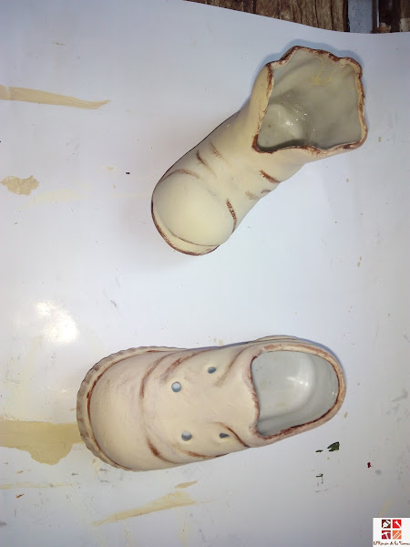 Dos zapatos de cerámica pasados de moda que en vez de ir a la basura les he dado una segunda oportunidad.