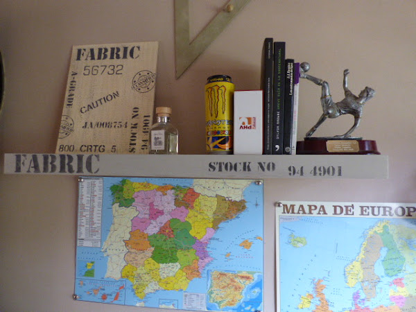 Los estantes eran de color pino y también los he pintado y les he hecho unos estarcidos