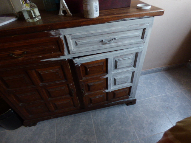 Así era el mueble castellano....como todos los de ese estilo, oscuro y ya algo anticuado. Era de mis abuelos maternos y como tantas cosas, mi madre me lo dió hace años.