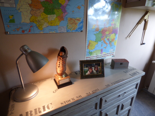 He visto muchos muebles castellanos tuneados y si hubiera sido para mí tengo claro que en cada cuarterón hubiera puesto una flor con decoupage.....pero siendo para mi hijo tenía que decorarlo acorde a él y además no podía hacerlo demasiado recargado.