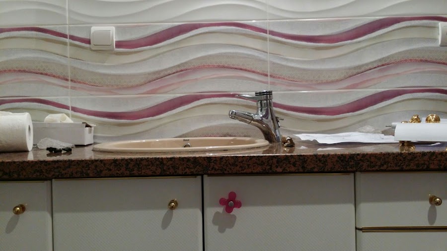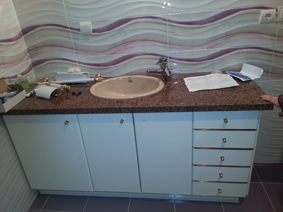 Por problemas de humedad los azulejos estaban totalmente huecos con el consiguiente peligro, de que se nos pudieran caer encima. Por lo que un profesional los picó y los puso nuevos.