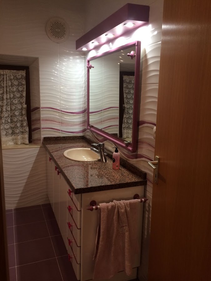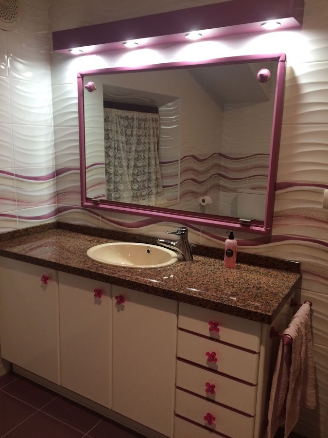 Predomina un color rosa, en distintas gamas. Tengo que decir que queda un baño muy femenino. Pero las dos princesas que le darán uso están encantadas con el cambio.