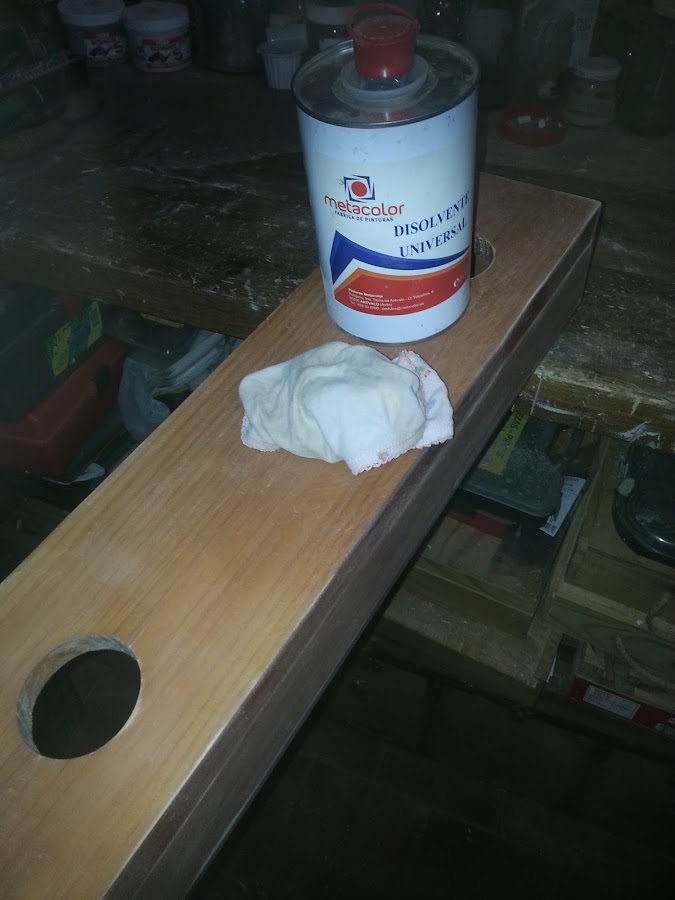 Y con disolvente y un paño limpio bien toda la madera.