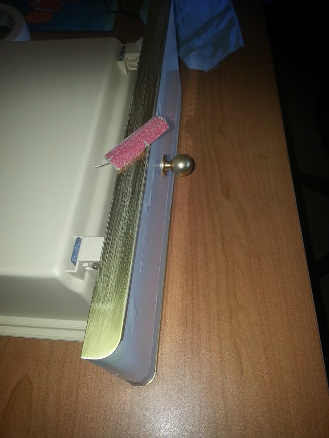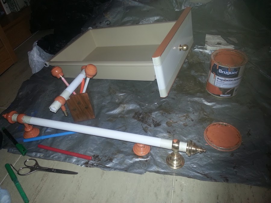 La verdad me lío a trabajar sobre el proyecto y se me olvida hacer fotos. Pero yo os cuento, todos los dorados que son aluminio, los araño con lija para conseguir una mayor adherencia de los acabados.