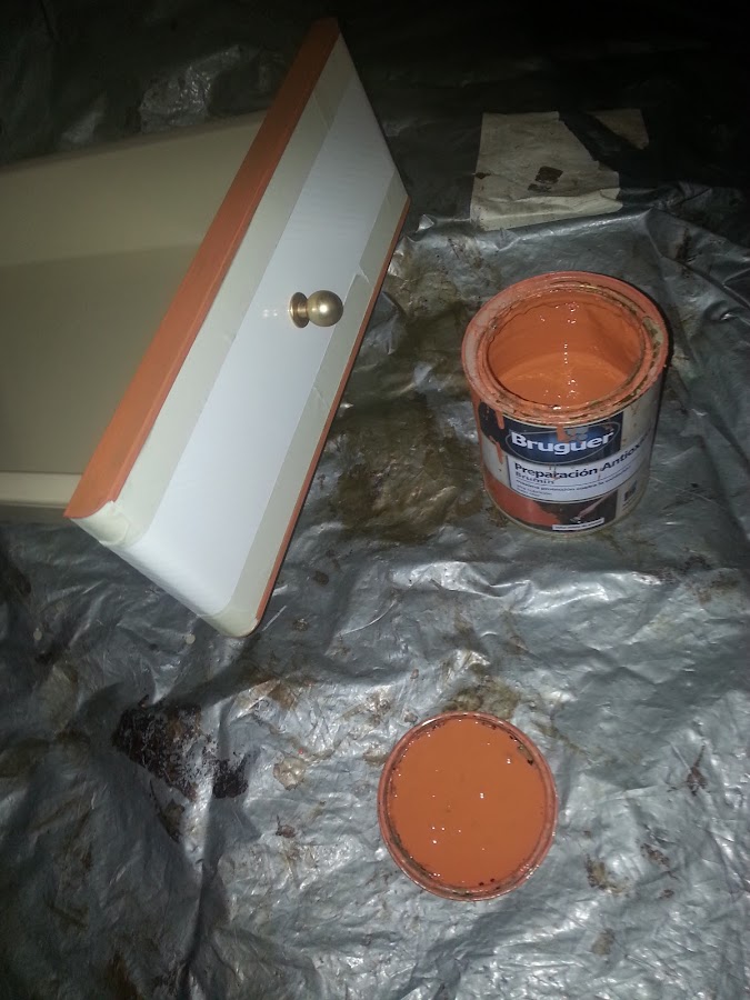 No tengo fotos de lo de después, pero os cuento sobre esta madera utilicé esmalte acrílico satinado, sin necesidad de dar imprimación. Dos manos fueron suficientes.