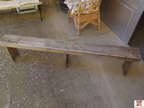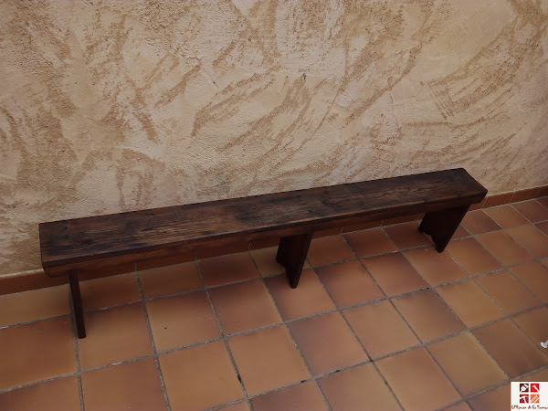 Y este es el caso de este banco que me encontré en la calle abandonado, el pobre estaba grisáceo de estar en la calle mucho tiempo, el sol y la lluvia había dejado su huella en él pero me enamoró según lo vi. Con la ayuda de mi marido lo metimos al coche y cuando pudimos me lo llevé para el pueblo porque claramente su sitio era ahí.
