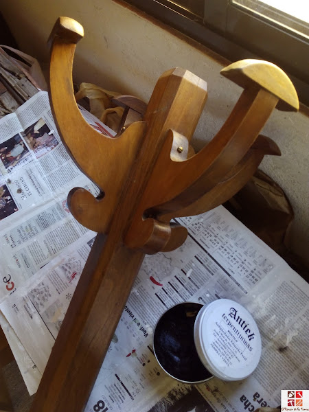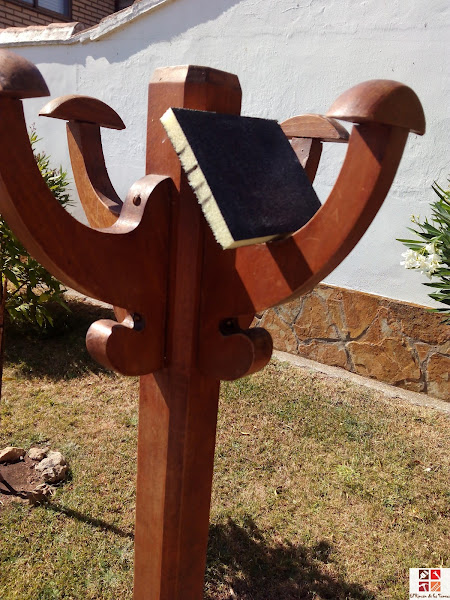 Estaba en perfectas condiciones, así es que solamente lijé un poco, y de nuevo cera para proteger y nutrir y sacar brillo.
