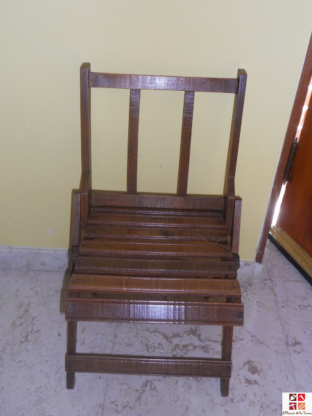 Después con masilla para la madera tapé el agujero, lijé un poquito toda la silla y lo último fue nutrirla con cera de color.