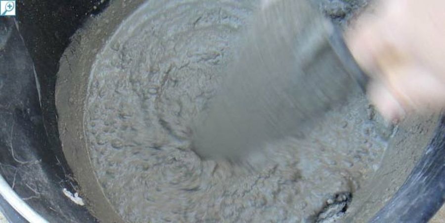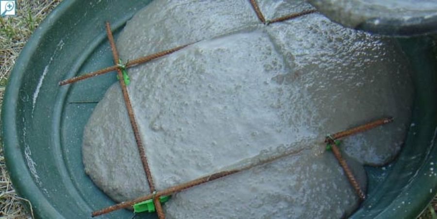 Preparamos la mezcla, después de medir el volumen del plato (5 litros). La mezcla es de 1 parte de cemento, dos de arena y dos de grava, recordemos que el volumen no aumenta al añadir el agua, porque la arena siempre viene muy esponjada.