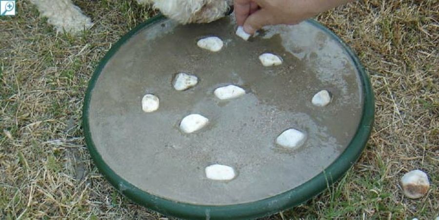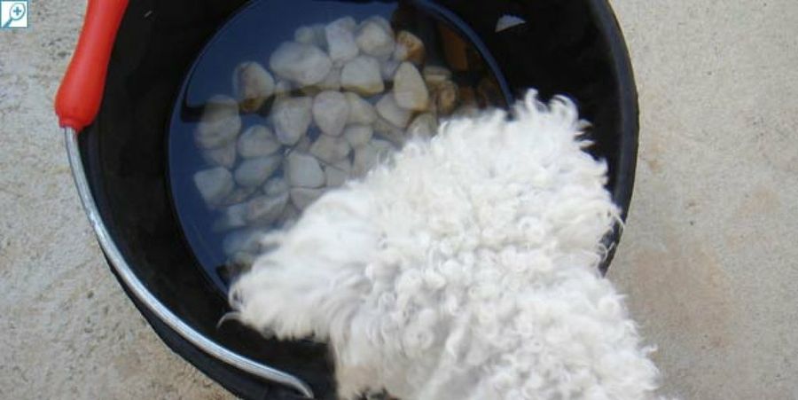 La primera tarea será el lavado. De hecho antaño siempre se utilizaban piedras recién lavadas: los obreros las cogían de los arroyos. Aquí vemos a Coco, dispuesto como siempre a ayudarnos en la tarea, inspeccionando el lavado de guijarros.