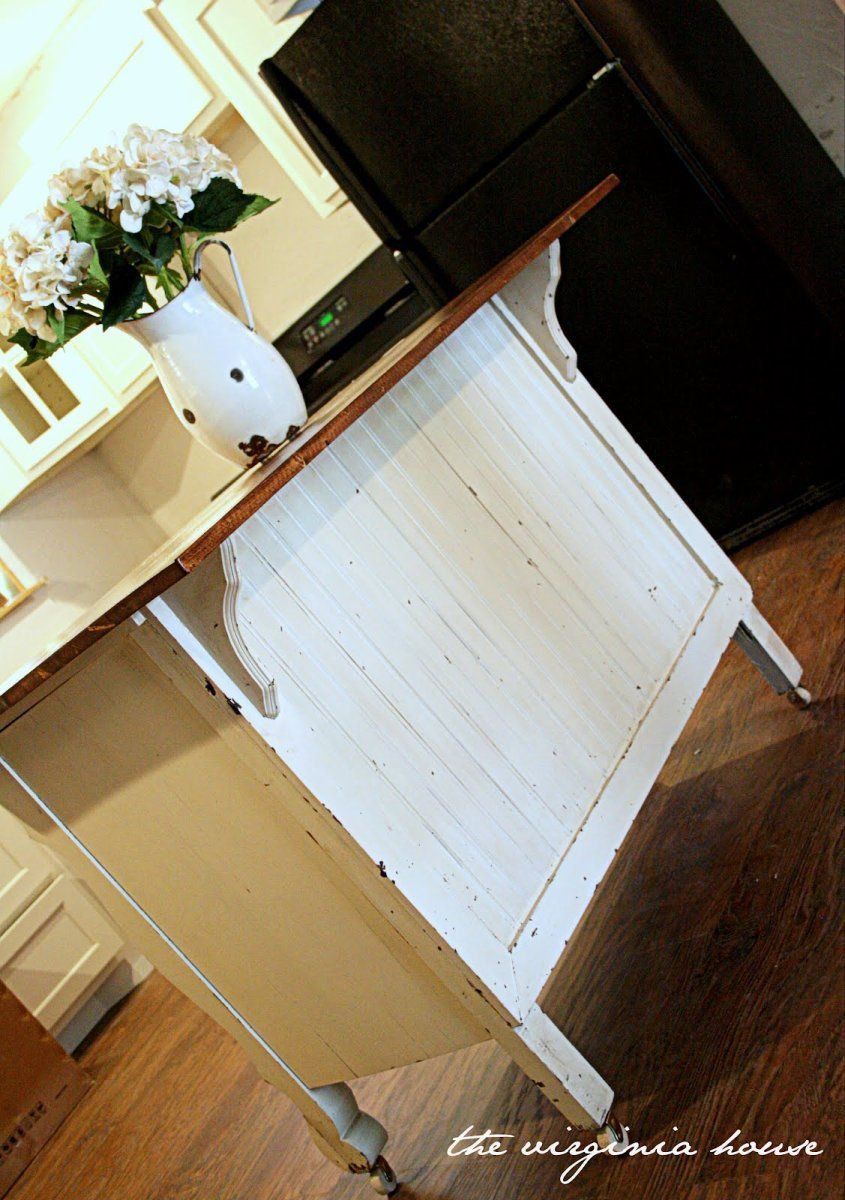 También tenéis la opción de fabricar una preciosa isla siguiendo el ejemplo que vemos en esta fotografía. Como podéis ver, este diseño está compuesto por dos cómodas iguales y un tablero de madera o encimera.La decoración de esta isla también llama mucho la atención, con un tono rojo muy atrevido y un estampado floral que han conseguido con el uso de plantillas. La unión de las dos cómodas podemos realizarla, simplemente, con una bisagra que una las patas entre sí, por la parte de dentro, y la unión que supone ya de por sí la encimera. Así, si con el tiempo queréis desmontar la isla, podéis usar de nuevo las cómodas por separado.