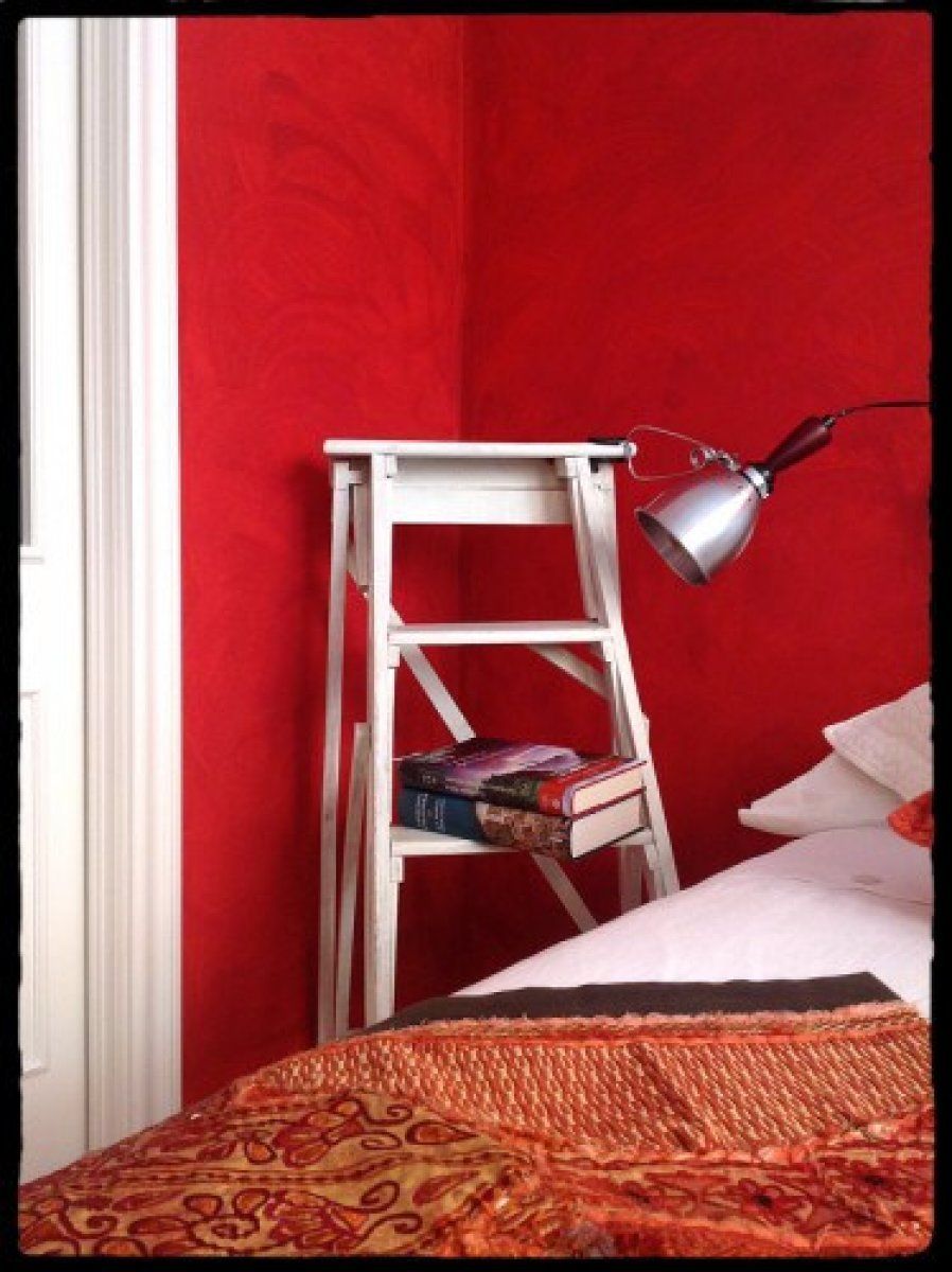 Pero también tenemos la opción de emplear objetos reciclados como mesillas. Martafr1975, por ejemplo, ha decidido convertir una escalera de madera en mesilla. También podemos emplear diferentes maletines o maletas antiguas, una encima de la otra, o unas bobinas de hilo.