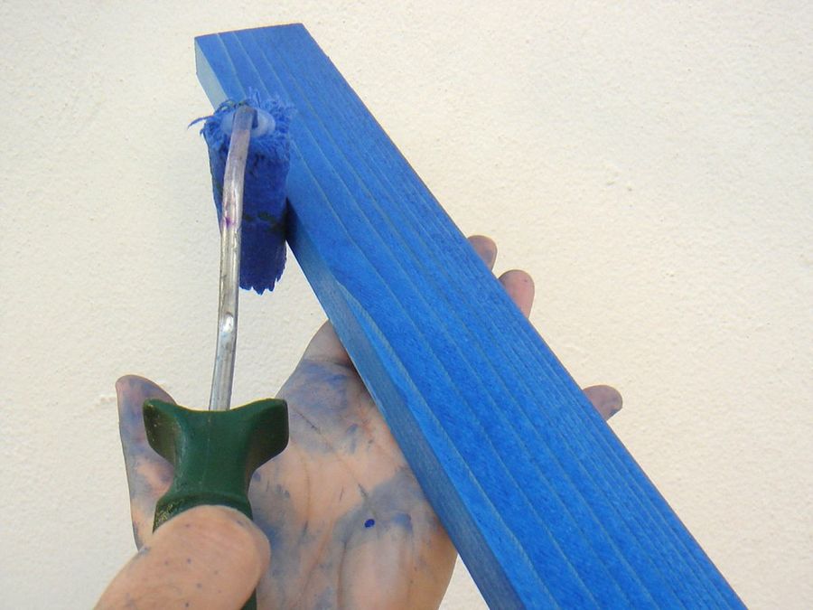 Hemos escogido un tinte al agua, que permitirá apreciar las vetas, los nudos y todos los rasgos que hacen tan entrañable la madera. Además el tinte dejará el poro abierto, de forma que luego podremos encolar perfectamente los listones.
