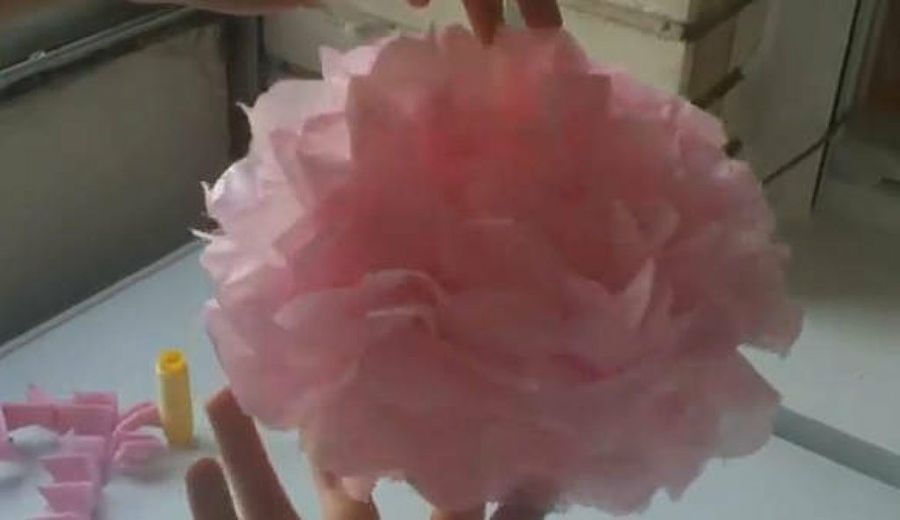 Para la decoración nos hemos decantado por pompones de papel. Para realizarlos, como ya hemos comentado, necesitaremos papel de seda e hilo.Lo primero será recortar muchas capas cuadradas de papel y las doblaremos en forma de abanico. Después, anudaremos el hilo justo en el centro, redondearemos los bordes con ayuda de las tijeras y estiraremos los lados. A continuación, vamos levantando con cuidado cada una de las capas mientras les damos forma. En este vídeo podéis ver el proceso completo con más detalle.